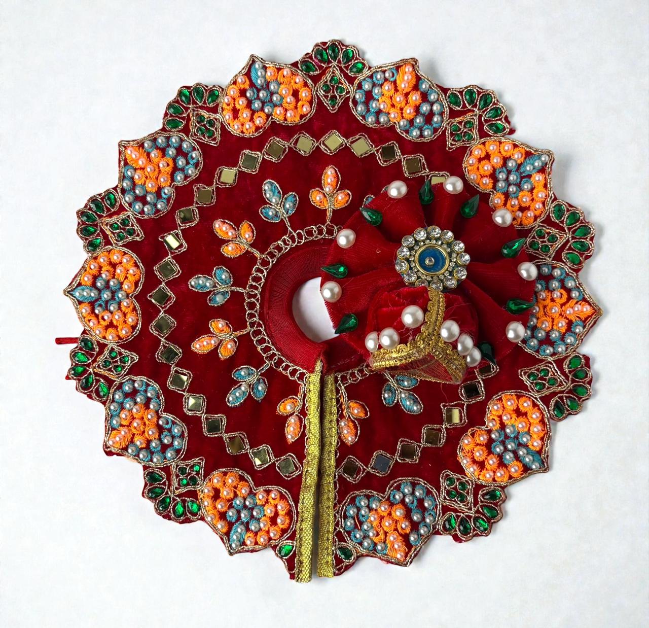 This exquisitely crafted heavy poshak for Laddu Gopal ji is designed to reflect royal grace and divine beauty. Made with premium-quality fabric, the poshak is adorned with intricate zari, stone, and sequin handwork that adds a majestic shimmer. The vibrant colors combined with detailed embroidery enhance the spiritual charm and festive appeal. Finished with delicate lace borders and traditional motifs, this heavy poshak is perfect for festivals, Janmashtami, special puja, and temple celebrations. It ensures a divine, graceful look for Thakurji, symbolizing devotion, elegance, and timeless tradition.